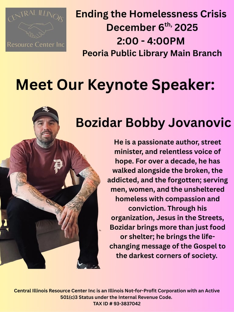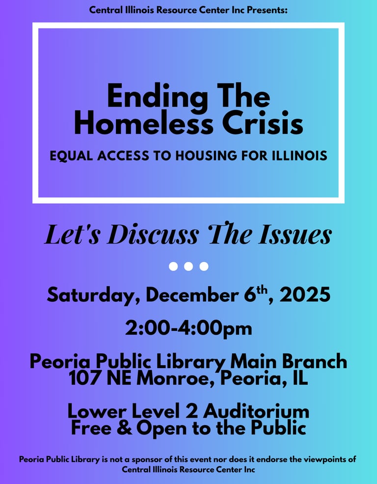 Peoria Public Library is not a sponsor of this event, nor does it endorse the viewpoints of Central Illinois Resource Center Inc.
